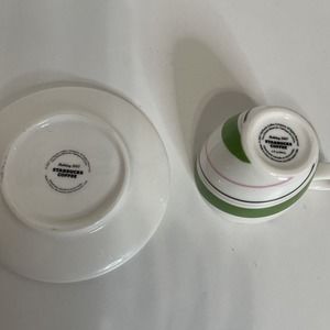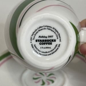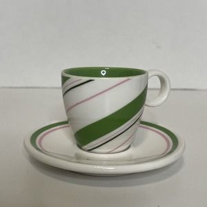 Starbucks Demi Espresso Mini Cup Mug Saucer Candy Striped Holiday 2007 Set