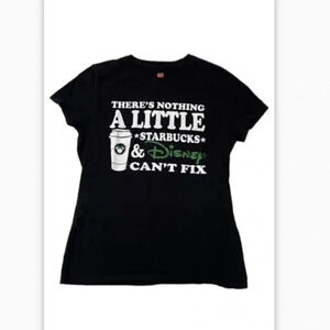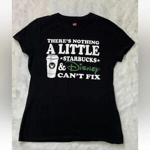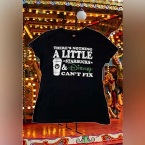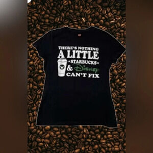 Starbucks Disney Coffee T Shirt Glitter Black Green Small Vacation