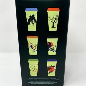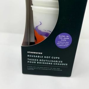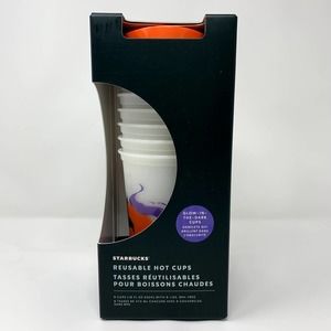 Starbucks Fall 2022 Reusable Plastic Hot Cups with Lids Glow in the Dark Halloween 6 cups 16 oz each.