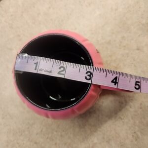 The ceramic mug is shaped like a pumpkin and is finished in a bright hot pink glaze with a black interior.