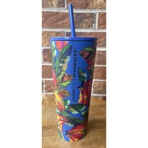 Starbucks Farm Rio 24 oz Tumbler Cup Blue Pink Floral With Straw New 2025