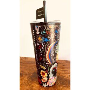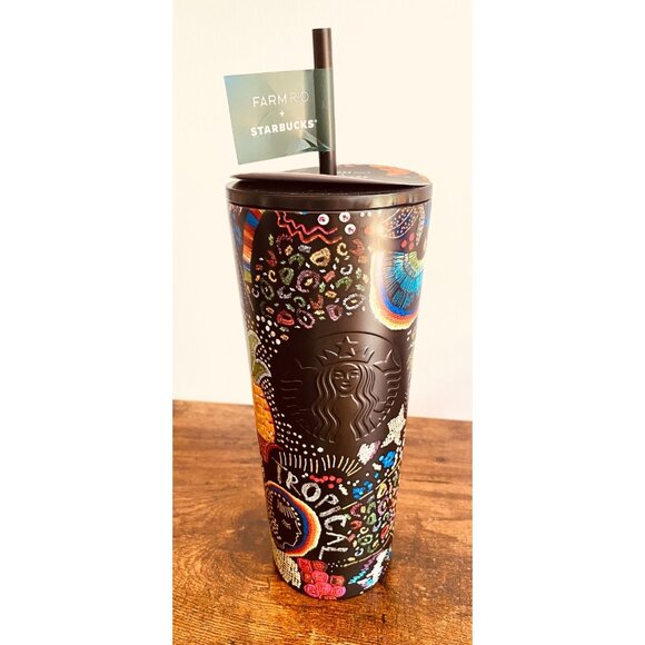 Starbucks Farm Rio Black Graphic Borogodo Rainbow Print 24 Oz Stainless Tumbler