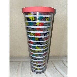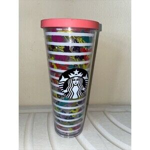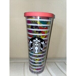Starbucks Floral Stripes Bright Flowers‎ Cold Cup Tumbler No Straw 24 oz