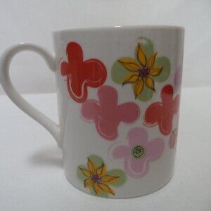 Starbucks Floral Sunflower Mug Cup red pink Micro Dish safe Groovy 2007 Ceramic