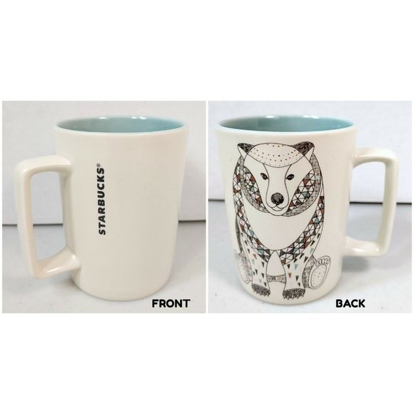 Starbucks: Geometric/Mosaic Polar Bear - 12oz. Coffee/Tea Mug - Cream/Blue