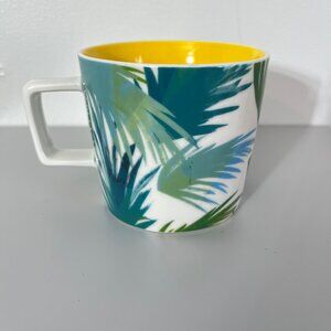 Starbucks mug, tropical mug, Hawaii coffee mug, yellow interior mug, ceramic coffee mug, palm leaf mug, travel souvenir mug, dishwasher safe mug, Starbucks Hawaii, 14 oz mug, collectible mug, microwave safe mug, tropical drinkware, ceramic hot beverage mug