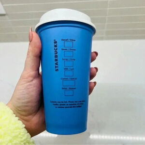 Starbucks Heck Yes Blue Graphic Reusable Coffee Cup 16 oz.