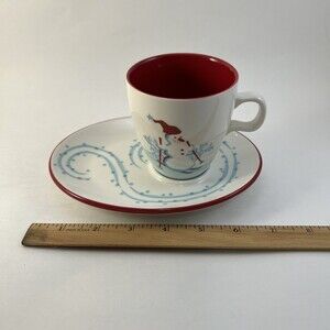 Starbucks Holiday 2007 Coffee Tea Cup & Snack Plate Skiing Snowman Penguin 6 oz. No chip or crack