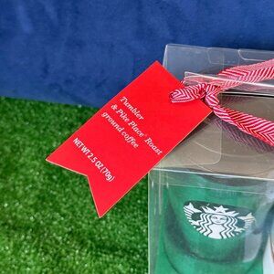 Starbucks Holiday 2016 Gift Set Reusable Green Tumbler & 2.5 oz Roast Coffee NEW