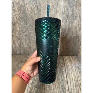 Starbucks Holiday 2021 Emerald Green Jeweled Venti 24oz Cold Cup Tumbler w Straw