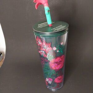 Starbucks Holiday 2022 Poinsettia Venti Tumbler + Flower Straw Topper