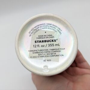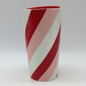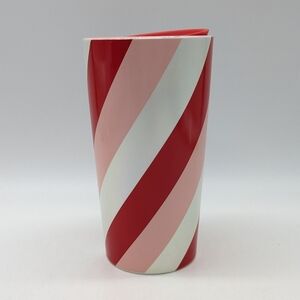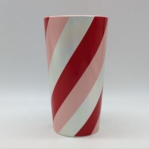 Starbucks Holiday Christmas Winter Candy Cane Ceramic Travel Coffee Mug 12 Fl Oz. Great condition. Red, white, pink stripes with an rainbow iridescent coating.