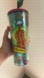 Vibrant Starbucks tumbler. Hollywood theme with colorful graphics. Pink lid adds a pop of color. Pins NOT included