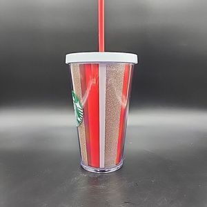 Starbucks Insulated Tumbler Cup Grande GLITTER STRIPED 2018 16 oz. New