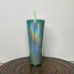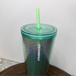 Starbucks Mint Green Iridescent Bubble Venti Tumbler Cold Cup with Straw. Holiday 2020 series. New. Limited edition no longer sold in stores. Super cute cup with an rainbow iridescent bubble print and clear green lid. Faint scratch on lid. 24oz. Nwt.