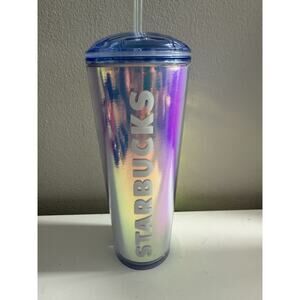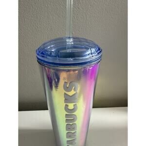 Starbucks Iridescent Hologram Dome Venti 24 Fl Oz Cold Cup Tumbler with Straw