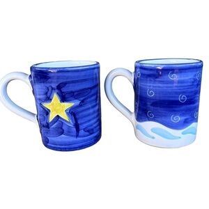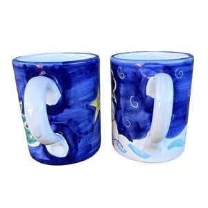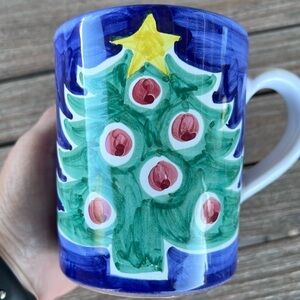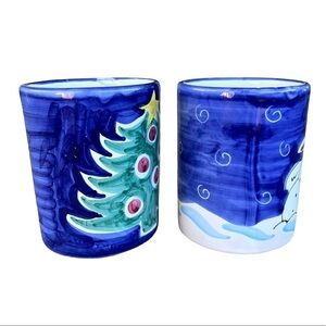 Starbucks Hand Painted Christmas Tree and Snowman Coffee Mug 2-Piece Set. Hand painted, made in Italy. Hand painted pottery is unique and imperfect. The mugs have minor imperfections such as pinholes, glaze and paint variations. One of the mugs has some marks on the inside. See all pictures.