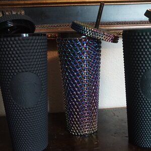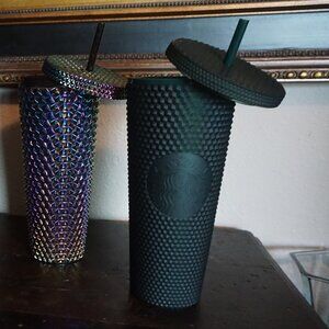 Starbucks Lid & Straws Tumblers 24 OZ Flat Black Emerald Green Iridescent Blue