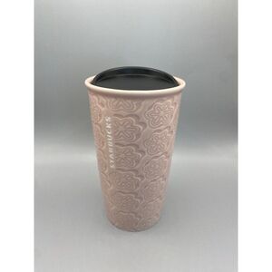 Starbucks Limited Edition Pink Sakura Cherry Blossom Embossed Ceramic Tumbler 10