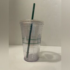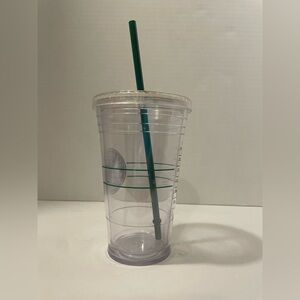 Starbucks tumbler has been gently used and is in good used condition (slight scuff on tumbler). Straw included.
