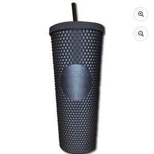 The Starbucks Dining Starbucks Matte Black Studded Diamond Fall 2019 Tumbler Cup Limited Edition Sku is a 24 fl oz plastic cold cup with a pleated texture and a metallic black finish. It is a collectible piece that blends style with your love for coffee or tea. The tumbler is made of plastic and is double walled. It is hand wash only