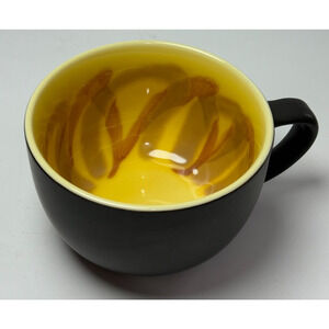 Starbucks Matte Black Yellow Sunflower Swirl Big Coffee Mug New Bone China 2012. No chips, no cracks. 14oz . 2.75" tall x 4.25" diameter.