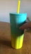 Starbucks Metal Tumbler, summer 2021 release . Yellow and turquoise color with ribbed sides. Vibrant yellow straw, 24oz.