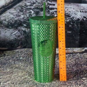 Starbucks Metallic Green Bling Studded Cup 24oz Venti Holiday 2023 new Christmas