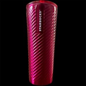 Make a bold statement with this stunning Starbucks 24oz tumbler featuring a rich metallic fuchsia swirl design and matching pink straw. A collector-favorite from the 2023 Holiday Collection, this tumbler is perfect for cold drinks on the go.