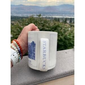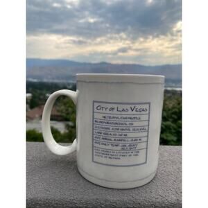 Starbucks Architecture Series Las Vegas 18 Oz Mug. Starbucks on handle. City of Las Vegas Stats on back. Indigo Blue on Cream Ceramic