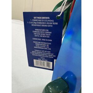 The Starbucks Mug is a 15oz green ceramic coffee mug with a holiday blend coffee design. It is decorated in the signature Starbucks style, making it a collectible item for coffee and tea enthusiasts. This microwave-safe mug features scoops as the food form and showcases a festive holiday theme, perfect for enjoying a warm cup of coffee during the holiday season. Made in China, this original Starbucks product is a must-have for any coffee lover's collection.