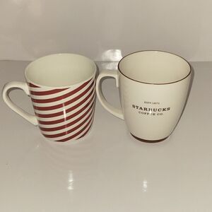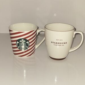 Starbucks Mugs Set of 2 Striped Christmas and Brown Coffee Co Mugs