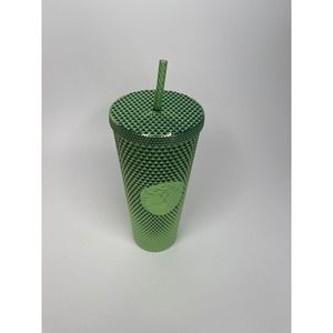 This is a brand new Starbucks Winter Holiday Green Bling Stud Venti Tumbler, perfect for any coffee or tea lover. The tumbler features a beautiful green color and sparkling bling studs, making it a great addition to your collection or a unique gift for someone special. With its original and authentic design, this tumbler is sure to stand out and impress.