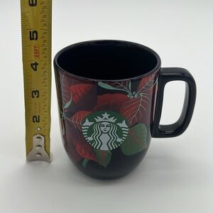 Excellent, used condition, 12oz. Navy ceramic mug with poinsettia and siren mermaid logo. Please see pics for details and measurements. No chips, cracks, or stains noted.