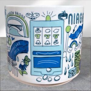 The Starbucks Niagara Falls Been There Series 2019 Coffee Mug is a 14 oz ceramic mug featuring a unique design inspired by Niagara Falls. This collectible mug is microwave and dishwasher safe, making it both functional and convenient for coffee and tea enthusiasts. The multi-color design adds a fun and vibrant touch to the theme of coffee and tea, making it a great addition to any Starbucks or coffee lover's collection. Crafted in 2019, this original mug captures a moment in time and celebrates the beauty of coffee and tea culture.