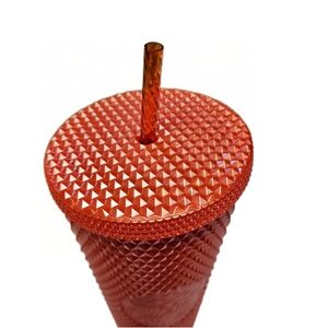 The Starbucks Orange Pearl Studded Tumbler Cold Cup Venti 24oz is a limited edition collectible item featuring the iconic Starbucks brand in a vibrant orange color.