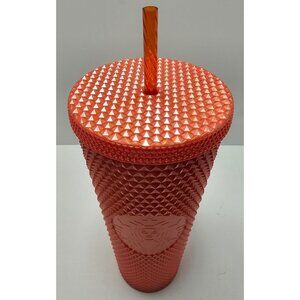 Starbucks Orange Pearlized Studded 24 Oz Tumbler with Matching Straw and Lid