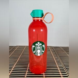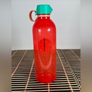 Starbucks Orange Water Cold Drink Bottle With Cup Plastic 24 Oz Limited Edition.