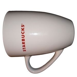 -White Mug (exterior & interior) with Red Lettering: Starbucks (on both sides of mug)