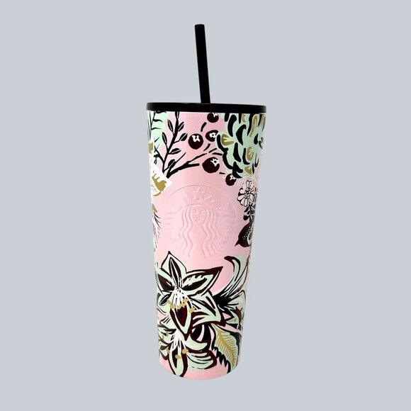 Starbucks Pink Enchanted Forest Cup Stainless Steel Glitter Cold Tumbler 24oz