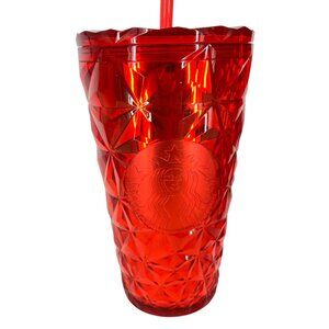 Starbucks Poinsettia Red Prism Tumbler Set With Lids Straws 16 Oz & 24 Oz