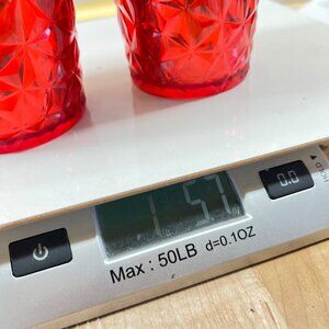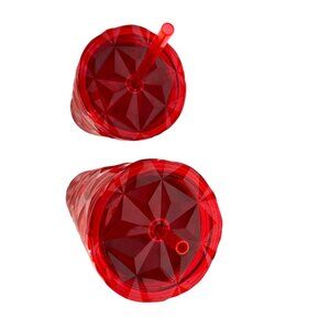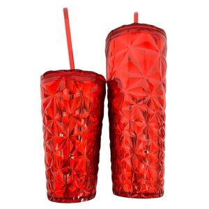 This tumbler set features bold poinsettia red prism designs offering a stylish and durable option for beverages. Includes two sizes for versatile use.