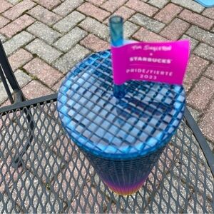 Starbucks Pride 2023 rainbow grid tumbler with straw Tim Singleton 24 oz