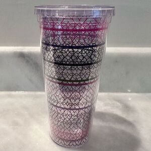 Starbucks Rainbow Hearts Plastic Cup Tumbler W/ Lid & New Straw Multicolor 591ml