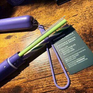 Starbucks Recycled purple Triangular Travel case straw & brush set - NEW