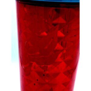 STARBUCKS Red Flowers Berries Abstract Faceted Cold Cup tumblers 24oz with Straw. PreOwned but never used. Beautiful condition. Measures 9 inches.