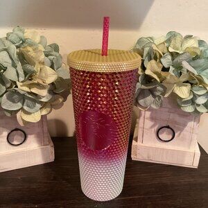 Starbucks Red & Gold Ombre Studded Tumbler With Straw 24 Oz
