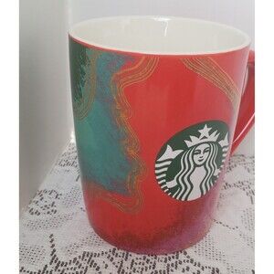 Starbucks Red Green Fancy Swirl Green Logo Coffee Tea Mug 2021 10 oz Mermaid Cup