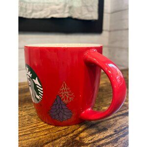 Starbucks Red Holiday Mug 18 Oz Featuring Evergreen Trees