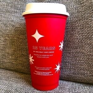 Brand new Starbucks Reusable Red Holiday Cup 16 oz Red 25 Years Christmas Holidays Limited Edition